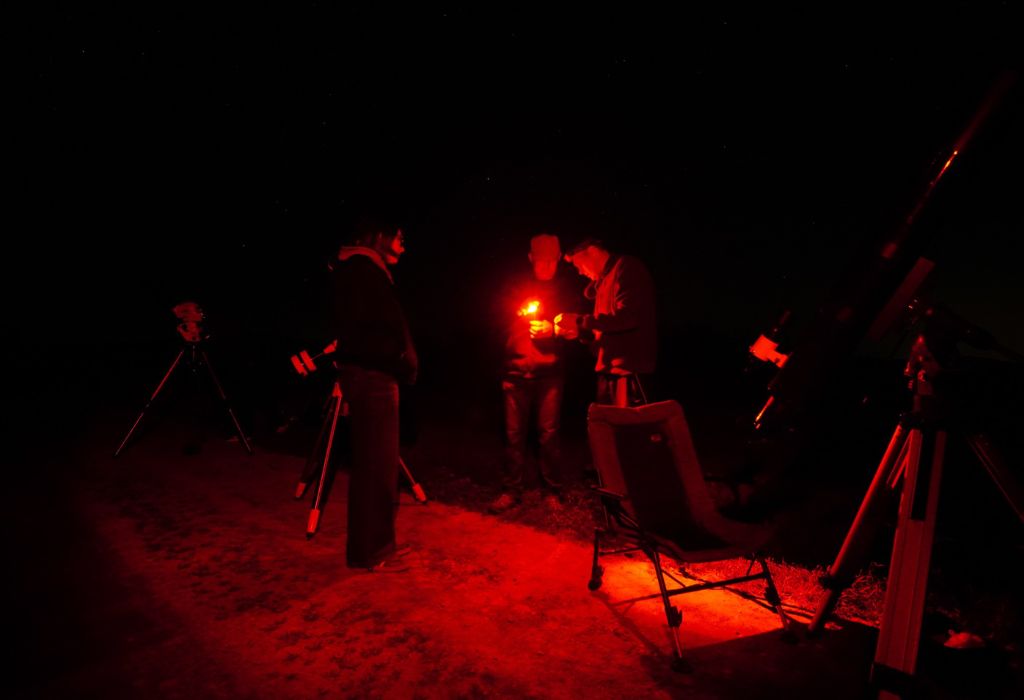 Cseh Viktor barátom hívta fel a figyelmem, hogy szombat estére felhőmentes égbolt várható. Mi sem kellett több: szóltam a Terminus csapatának, hogy ha van kedvük, tartsanak velünk egy kis spontán csillaglesre. Délután még csak ötlet volt, estére már 9 távcső pásztázta az eget – igaz, a felhők is versenybe szálltak velünk.